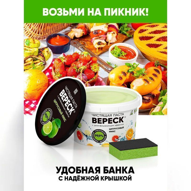 Паста чистящая Вереск с дезинфицирующим эффектом Цитрусовый микс 800г (12)
