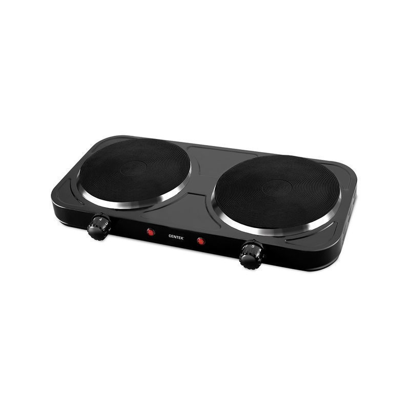 Плитка электрическая металл Centek CT-1507 черн. 2000Вт 2 конфорки ЧУГУН 155мм, индикатор работы (6)