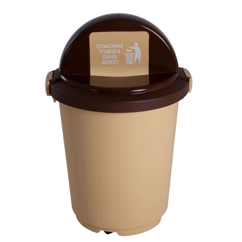 Бак для мусора 105л 55,5*55,5*62,5см пластик бежевый с крышкой-клавишей на колесах (5)