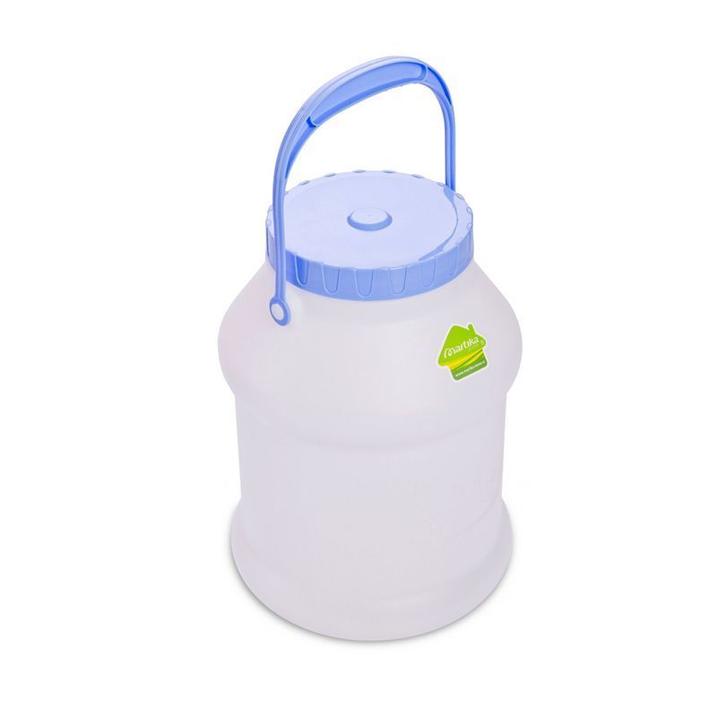 Пластик пищевой.Бидон предназначен для хранения и транспортировки пищевых продуктов: воды, молока, масла, меда, варенья, круп, сахара. Бидон имеет винтовую крышку, которая достаточно плотно прилегает к корпусу, но не гарантирует полную герметичность. Для удобства переноски имеется удобная встроенная ручка.