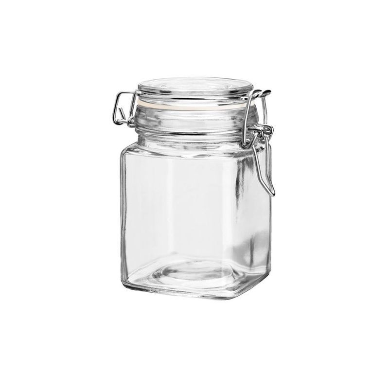Банка для сыпучих продуктов 100мл стекло квадратная с фиксатором JC-15969 (144)