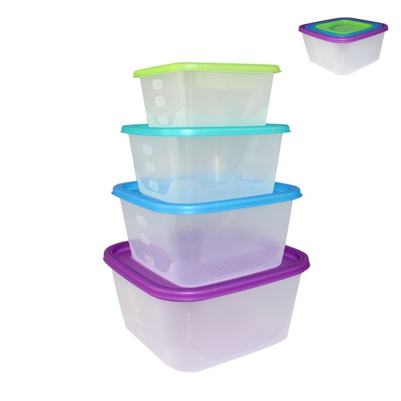 Набор контейнеров пищевых 4пр (2,6/1,7/1,1/0,63л) пластик Fusion квадратные микс (18)