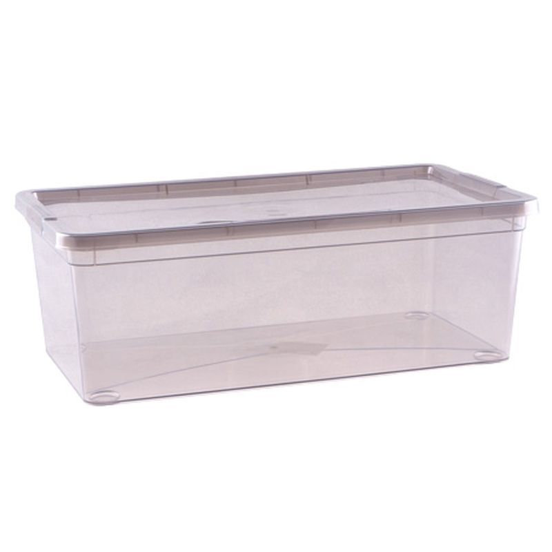 Стенки и крышка изделия выполнены из матового прозрачного пластика, позволяющего рассмотреть содержимое тары. Это значительно упрощает поиск нужной коробки, если у Вас их несколько.