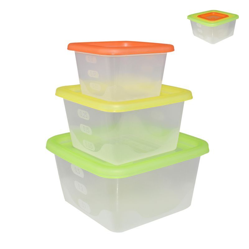 Набор контейнеров пищевых 3шт (0,63/0,33/0,15л) пластик Fusion квадратные микс (30)