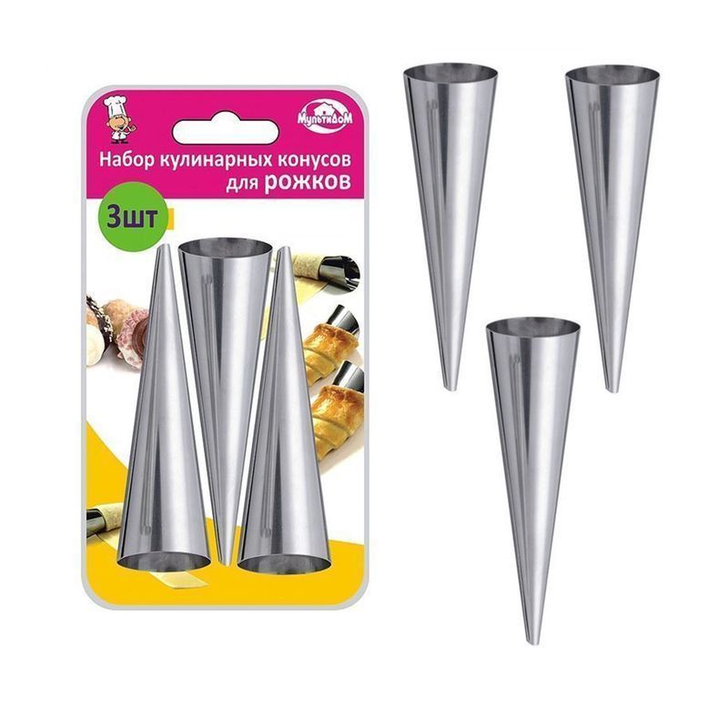 Трубочки из слоеного теста с нежным, тающим во рту кремом, - любимое с детства пирожное! Приготовить такие вкуснейшие пирожные вы теперь сможете и дома: Разрежьте слоеное тесто на тонкие полоски, обмотайте ими эти конусы внахлест и поставьте (или положите) в духовку. Выпекайте до готовности. Остудив готовые слоеные конусы, наполните их кремом, который больше всего любят в вашей семье. Благодаря этому конусу можно легко сформировать рожки с разными начинками и наполнителями. Если для выпечки использовать не сладкое тесто - то вы получите рожки, которые можно начинить овощной или мясной начинкой. Изготовлено из коррозионностойкой (нержавеющей) стали.