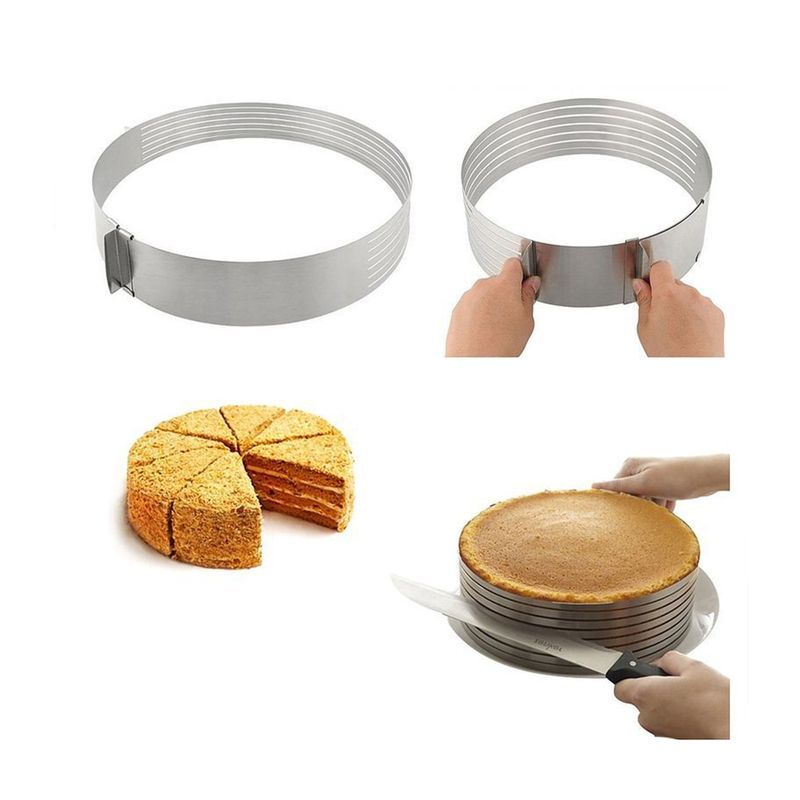 Кулинарная форма для нарезки коржей поможет аккуратно справиться со сложной задачей — нарезкой бисквита на одинаковые коржи. Тонкий бисквит идеально подходит для приготовления тортов, пирожных. Запеките тесто в обычной форме любой высоты, а затем разрежьте его! Поместите в форму с отверстиями готовый бисквит, при необходимости отрегулируйте диаметр. Аккуратно нарежьте заготовку через прорези с помощью острого длинного ножа, в результате у вас получится 7 коржей одинакового размера. Процесс нарезания максимально прост и займет у вас минимум времени. Диаметр слайсера регулируется от 24 до 30 см, внутри есть отметки для удобства регулировки, высота 8,5 см. После использования промойте изделие с моющим средством и высушите. Слайсер изготовлен из коррозионностойкой стали. Для регулировки диаметра разведите обе части ручки-держателя в разные стороны и зафиксируйте в нужном размере с помощью ползунка-стоппера.