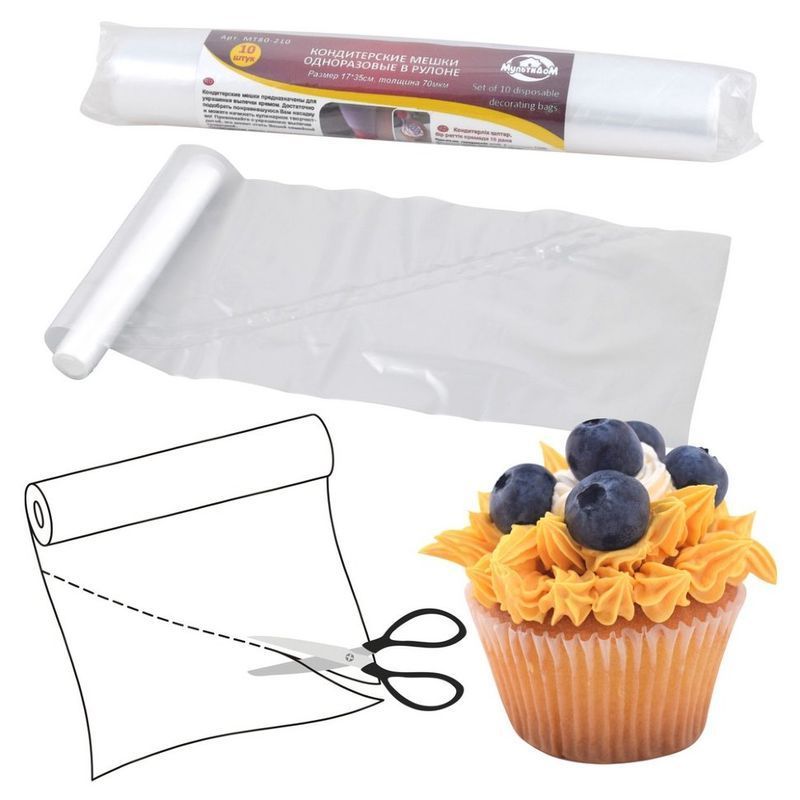 Мешок кондитерский набор 10шт 35*17см 70мкм полиэтилен одноразовый в рулоне (10/100)