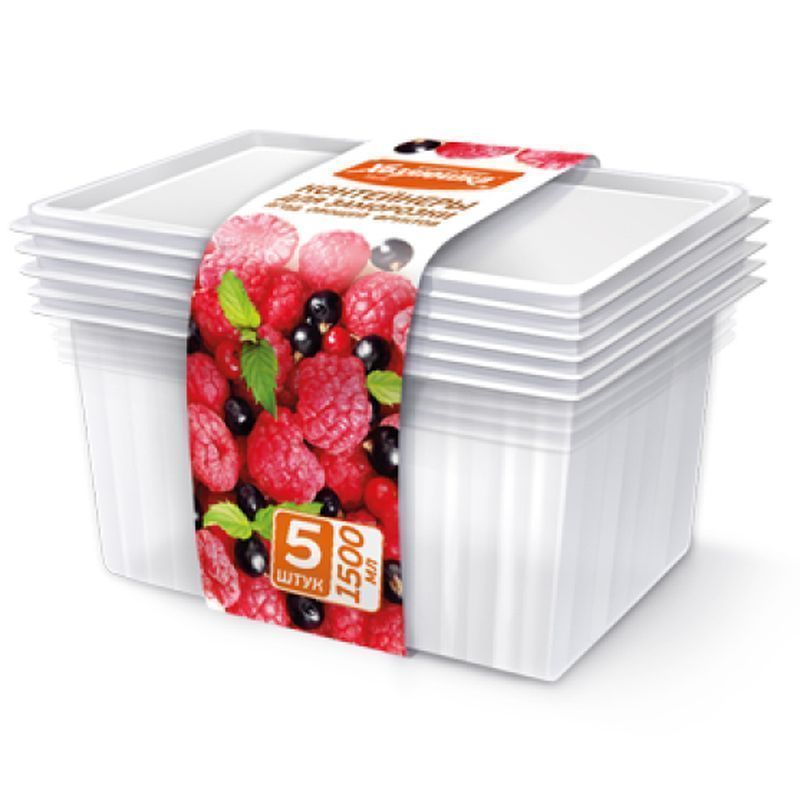 Контейнер для заморозки 5шт 1,5л 185*140*95+/-5мм полипропилен ХОЗЯЮШКА Мила с крышкой (18)