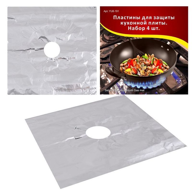 После использования покрытие снимается и утилизируется. Пластины подходят для всех типов газовых плит. Изготовлено из алюминия. Размер 25х25 см.