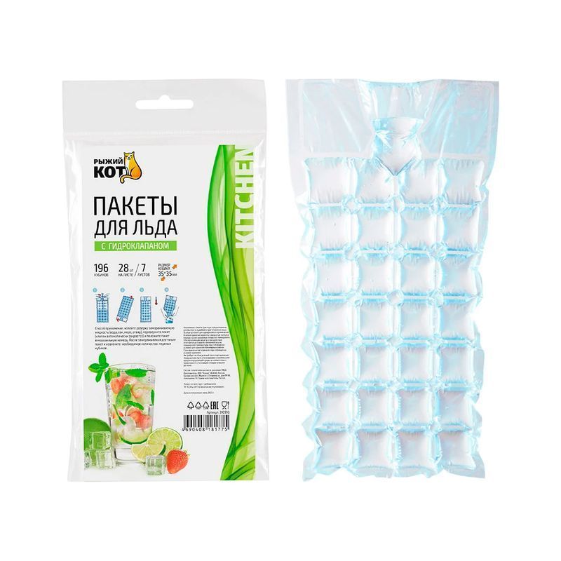 Пакеты для льда 196 кубиков полиэтилен РЫЖИЙ КОТ с гидроклапаном (50) ВЫВОД