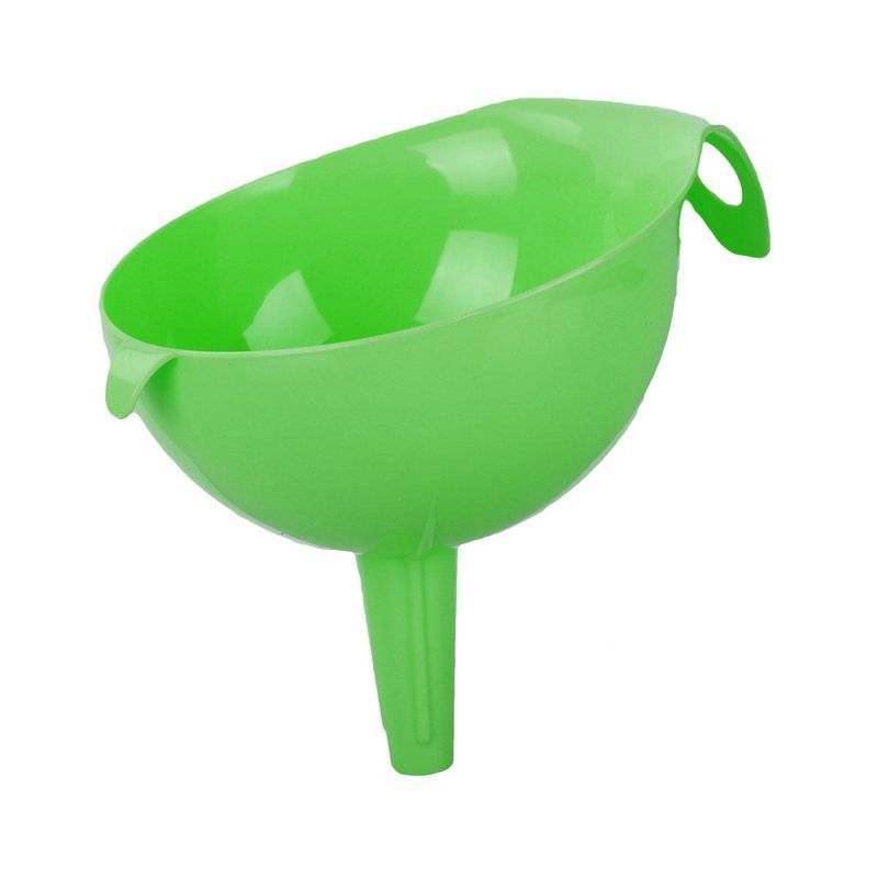 Воронка – важный предмет на любой кухне. Она облегчает процесс переливания различных жидкостей в ёмкости с более узким горлышком. На трубке имеются выступы для легкого выхода воздуха, вытесняемого при наполнении сосуда жидкостью. Воронку удобно держать и перемещать за выступающую ручку.