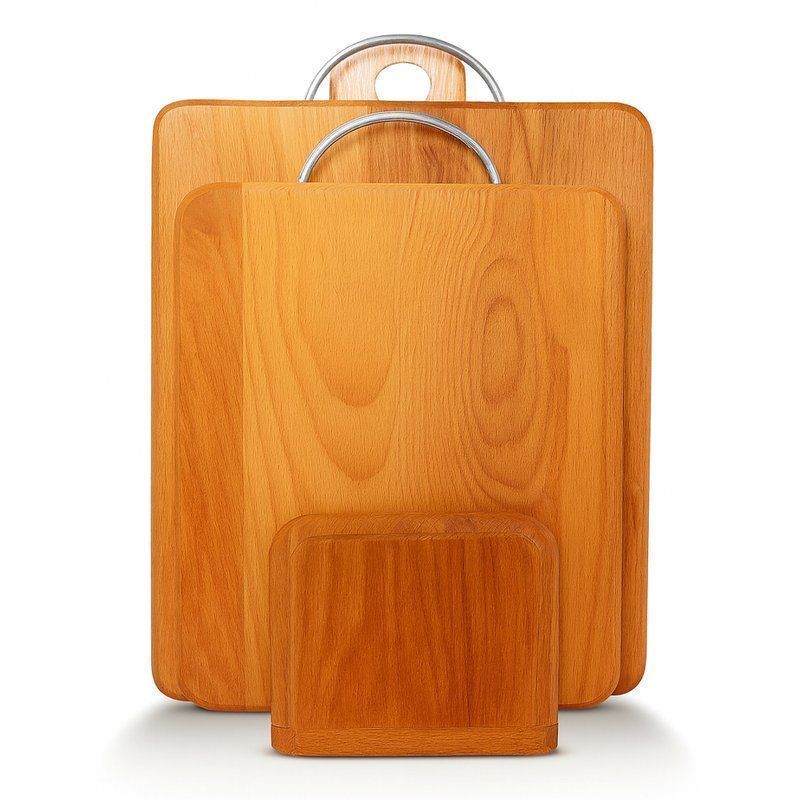 Набор разделочных досок Хозяюшка состоит из 2 прямоугольных разделочных досок и стойки, выполненых из бука. Бук наряду с дубом и тиком относится к ценным твердолиственным породам класса люкс. Доски устойчивы к механическим воздействиям и имеют высокое качество шлифовки поверхности. Доски не предназначены для мытья в посудомоечной машине.