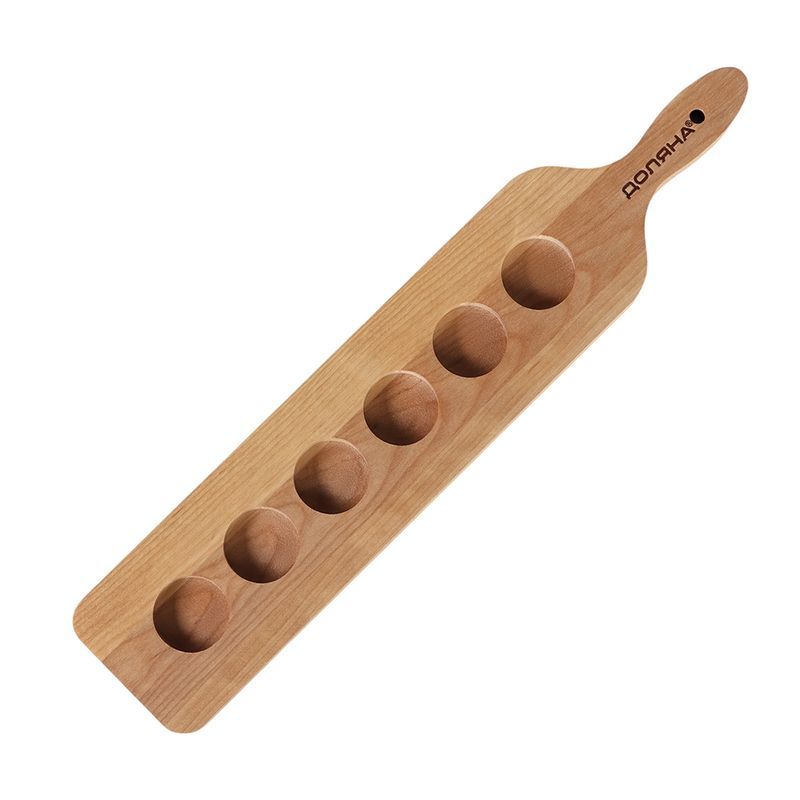 Доска для подачи 6 шотов дерево 45*9*1,8см d ячеек 3,9см с ручкой