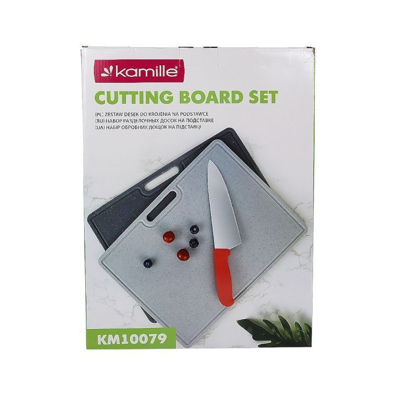 Доска разделочная 2шт 40*30*0,6см пластик на подставке серый гранит арт.10079 (6)