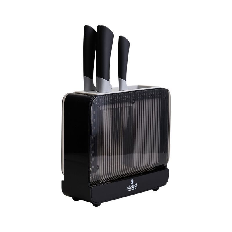 Удобная пластиковая подставка для хранения ножей и кухонных принадлежностей.