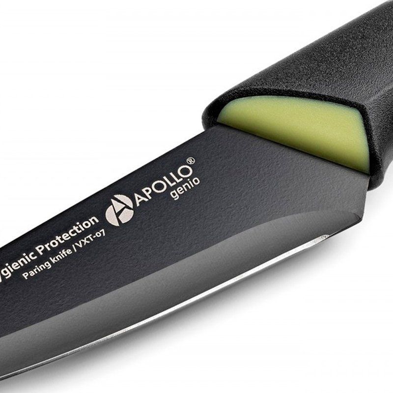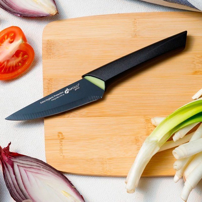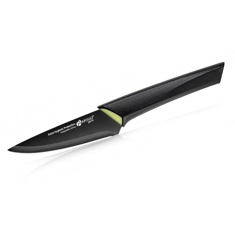 Нож предназначен для чистки овощей- фруктов и нарезки продуктов. Лезвие ножа имеет стойкое покрытие, которое уменьшает контакт продуктов со сталью, предотвращая процесс окисления и помогая сохранить полезные свойства продуктов. Специальная форма рукоятки не позволяет ножу выскальзывать из руки во время использования.