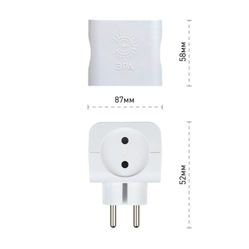 Разветвитель на 4 розетки пластик без заземления 16А белый SP-4-W ЭРА (10)
