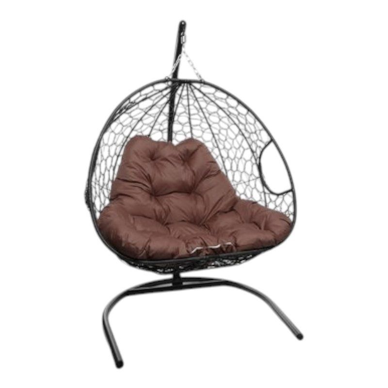 Подвесное кресло с ротангом "Для двоих" черное с коричневой подушкой M-GROUP