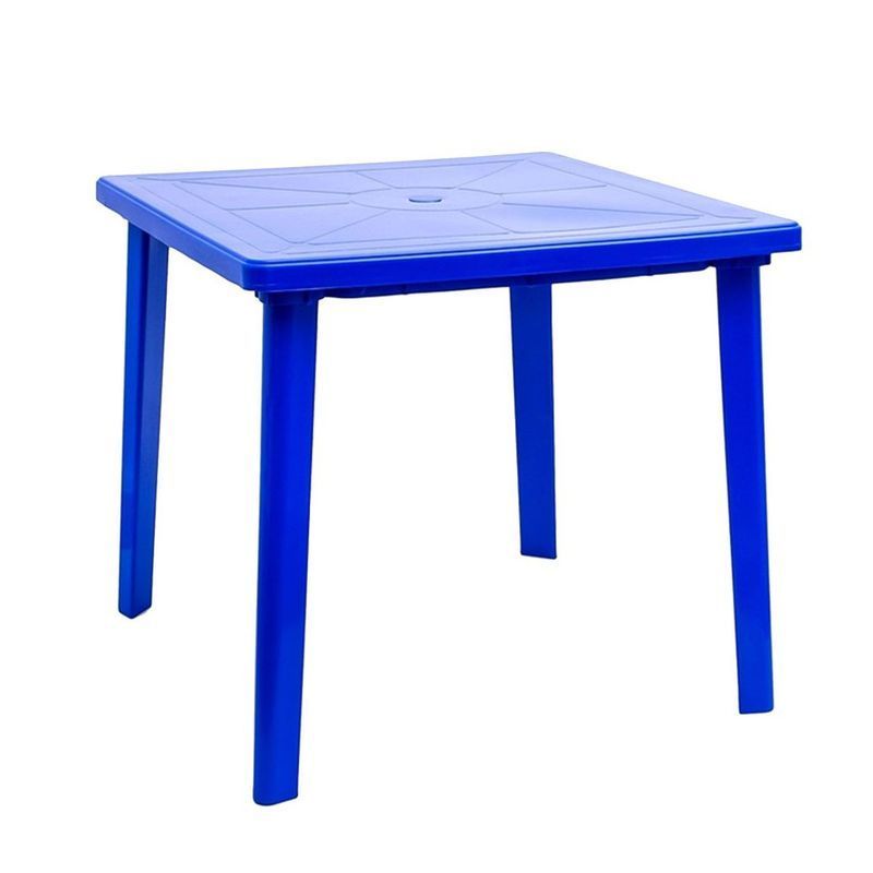 Небольшой квадратный стол из прочного пластика классического дизайна. В центре столешницы имеется отверстие с заглушкой для установки зонта. Ножки легко снимаются для лучшей транспортировки и хранения. Дополнив стол пластиковыми стульями в тон вы легко создадите удобный и практичный комплект мебели. Мебель из пластика устойчива к перепадам температур, повышенной влажности и УФ лучам. Составив несколько квадратных столов, можно организовать комфортную зону для отдыха для большой компании.Размеры в сложенном виде: 80*80*12,5см