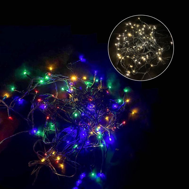 Гирлянда уличная формы "Нить" длина 30м, темно-зеленый провод, разные режимы от белого до разноцветного (переключатель режимов на трансформаторе)