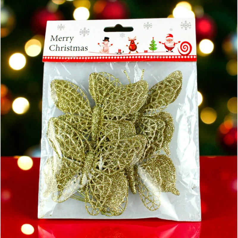 Игрушки новогодние на елку БАБОЧКА набор 4шт 9,5*10см пластик золото OSHRIP-421/JC-16554 (800)