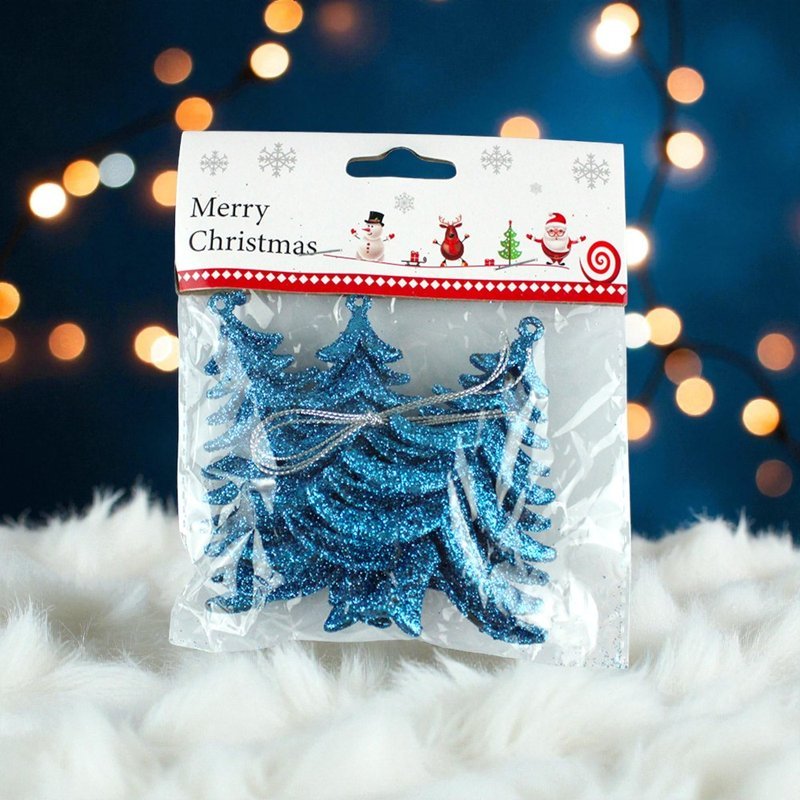 Игрушки новогодние на елку ЕЛОЧКА набор 3шт 10*7см пластик синий OSHR20-639/JC-16512 (1200)