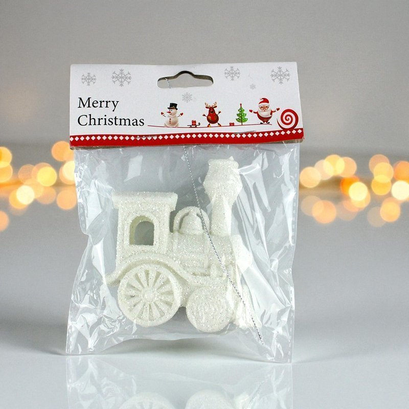 Игрушка новогодняя на елку ПАРОВОЗ 9*7см пластик белая OSHR21-536/JC-16463 (1200)