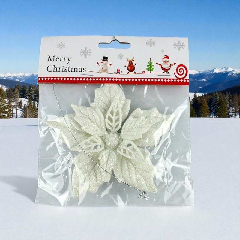 Игрушка новогодняя на елку ПУАНСЕТТИЯ 12см белая OSHR70-633/JC-16458 (1200)