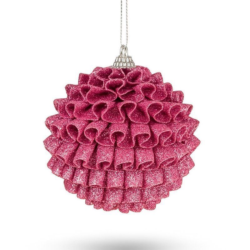 Игрушка новогодняя на елку ШАР 10см пластик ажурный розовый JC-15009 (216)