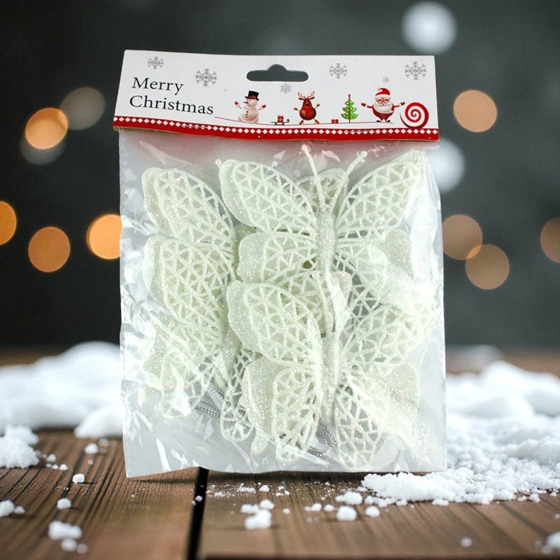 Игрушки новогодние на елку БАБОЧКА набор 4шт 9,5*10см пластик белый OSHRIP-421/JC-16553 (1600)
