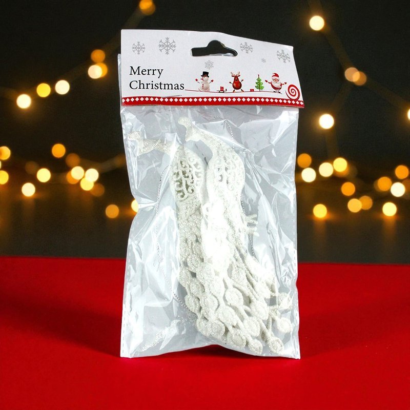 Игрушки новогодние на елку ЖАР-ПТИЦА набор 2шт 16*5см пластик белый OSHR20-390/JC-16533 (1200)