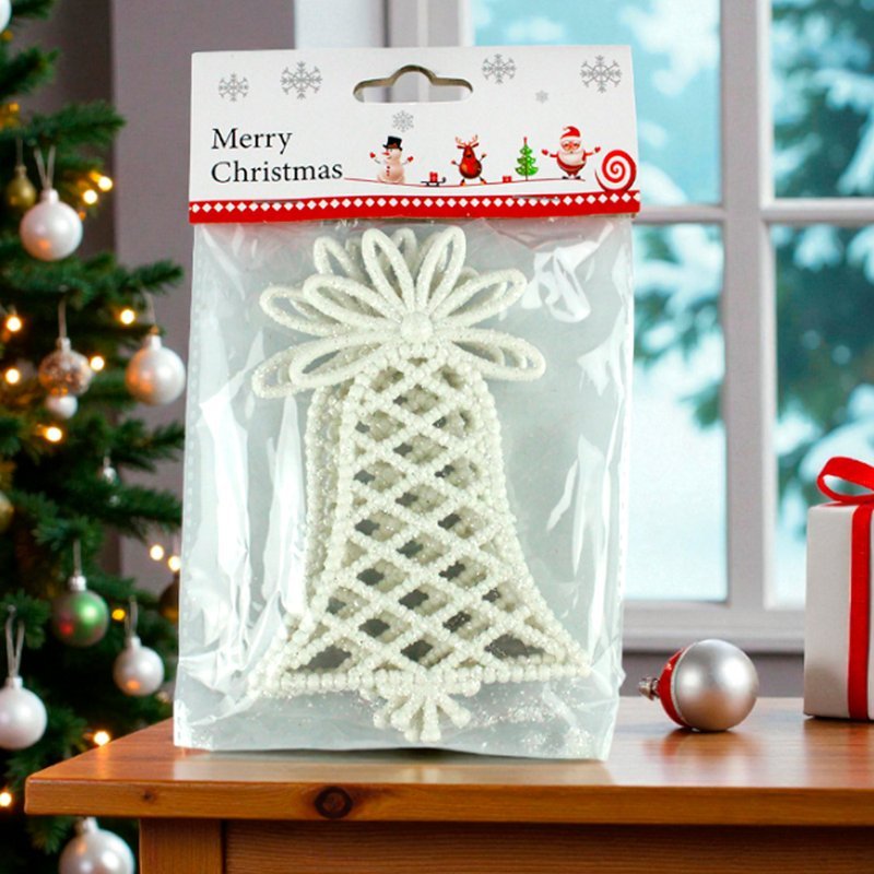 Игрушки новогодние на елку КОЛОКОЛЬЧИК набор 3шт 13*9см пластик белый OSHR22-021/JC-16558 (800)