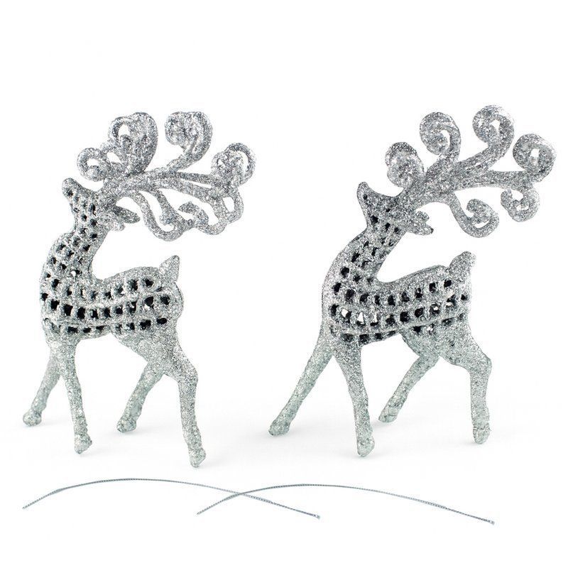 Игрушки новогодние на елку ОЛЕНЬ набор 2шт 14*6см пластик серебро OSHR20-313/JC-16470 (800)