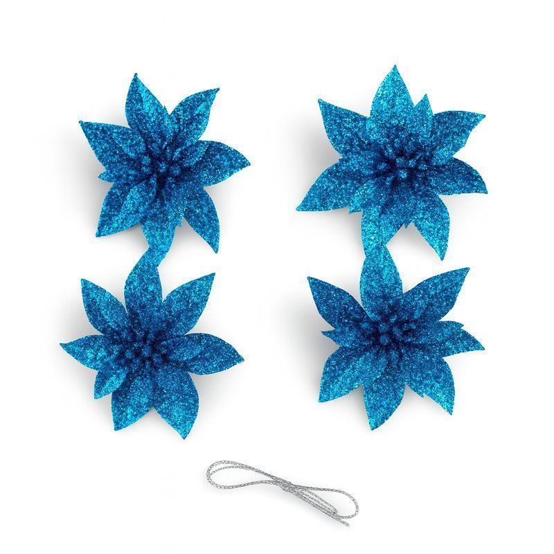 Игрушки новогодние на елку ПУАНСЕТТИЯ набор 4шт 6,5*6,5см синий OSHRIP-418/JC-16462 (1600)