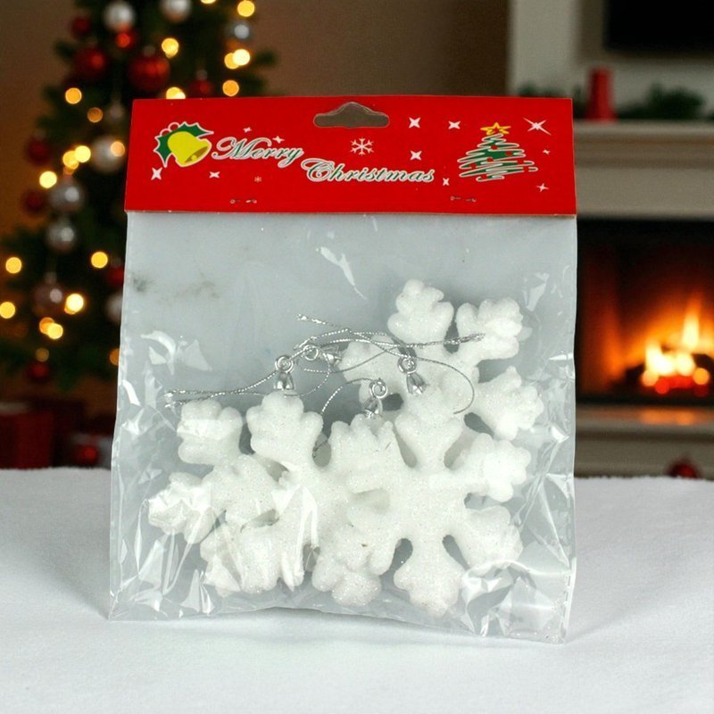 Игрушки новогодние на елку СНЕЖИНКА набор 4шт 7см пенопласт OSNN21-150/JC-16382 (1000)