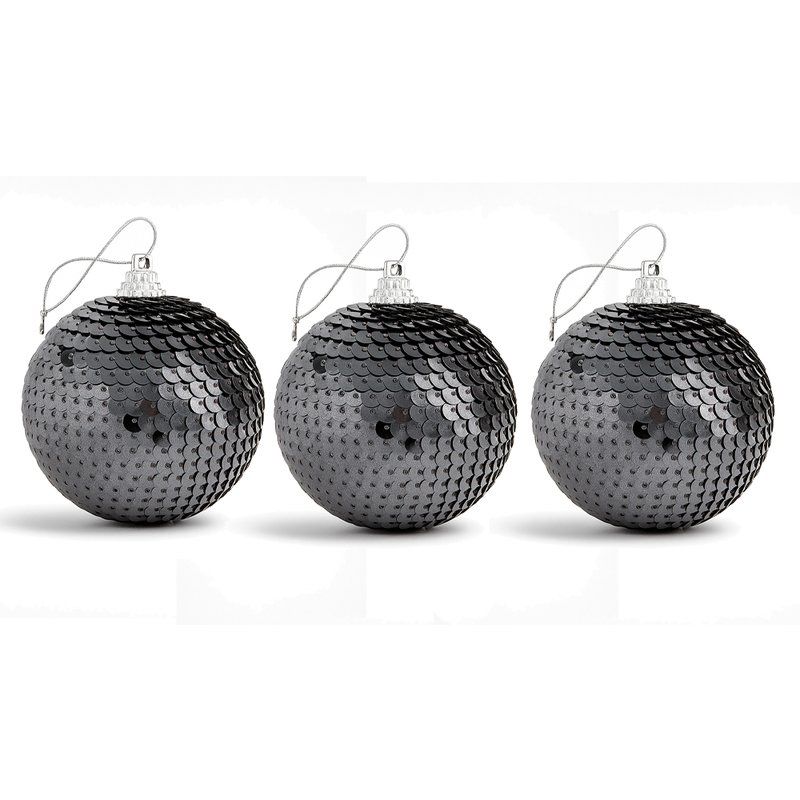 Игрушки новогодние на елку ШАР набор 3шт 8см пайетки черные (128) JC-17075