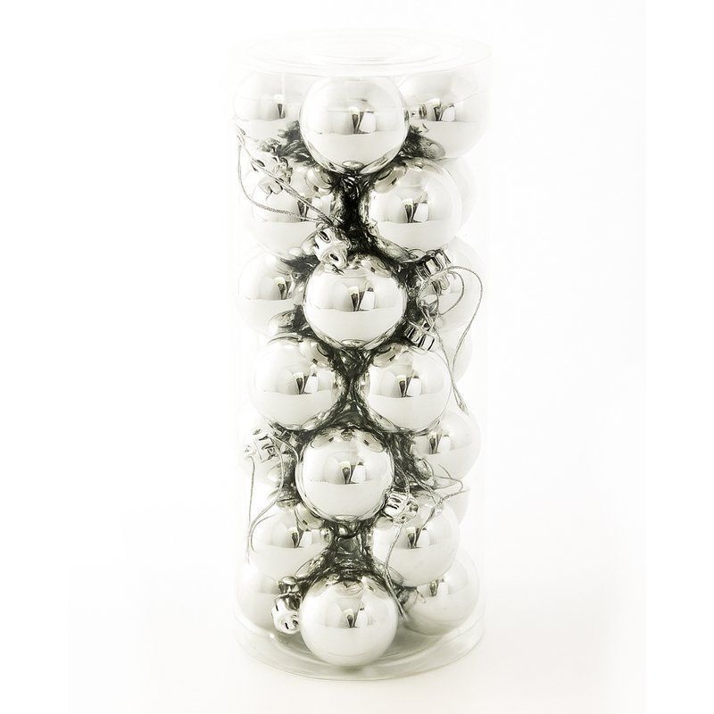 Игрушки новогодние на елку ШАР набор 24шт 4см пластик глянцевый серебро (120)