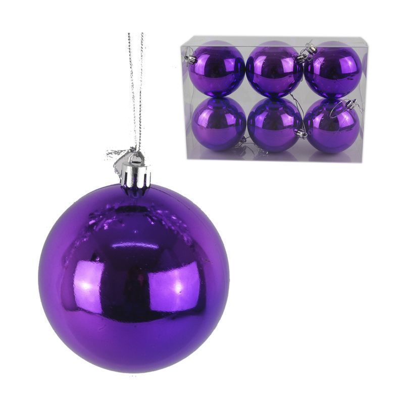 Игрушки новогодние на елку ШАР набор 6шт 6см пластик блестящий (фиолет) (120)