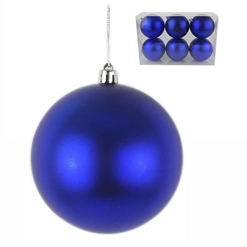 Игрушки новогодние на елку ШАР набор 6шт 8см пластик матовый (синий) (64)