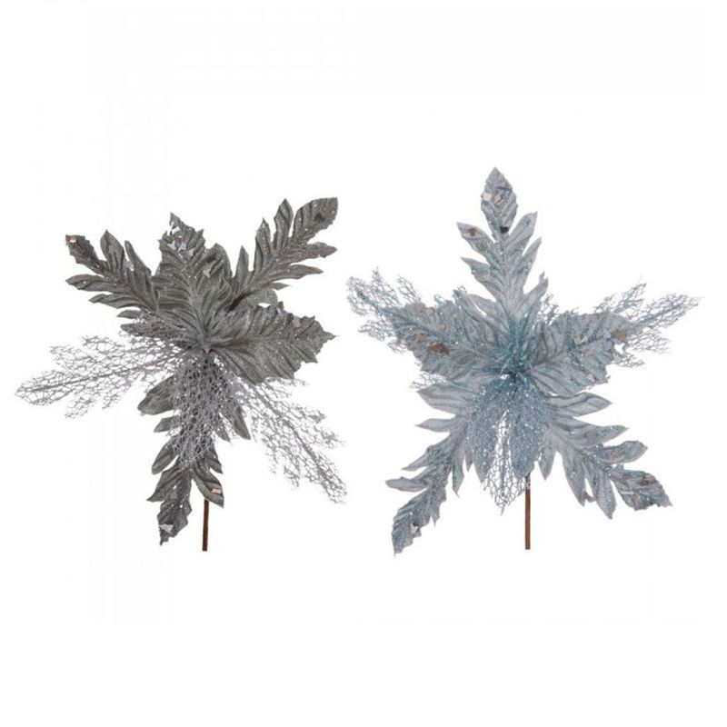 Декор новогодний Цветок Пуансеттия серебро/серый 28*28*33см, 2 вида (72/360)