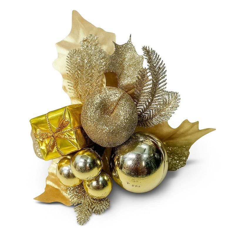 Украшение новогоднее Ветка 20*13см ПУАНСЕТТИЯ с яблоком и шарами золото OSTVR22025/JC-16443 (288)