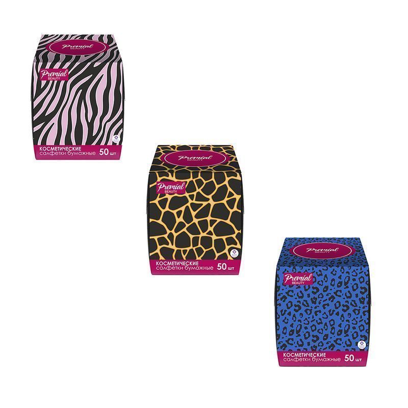 Салфетки бумажные в коробке PREMIAL 3-х слойные 50шт белые нон стоп (27)