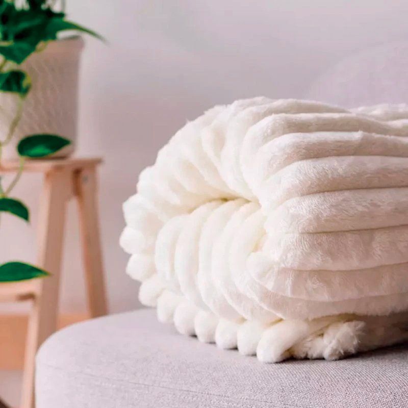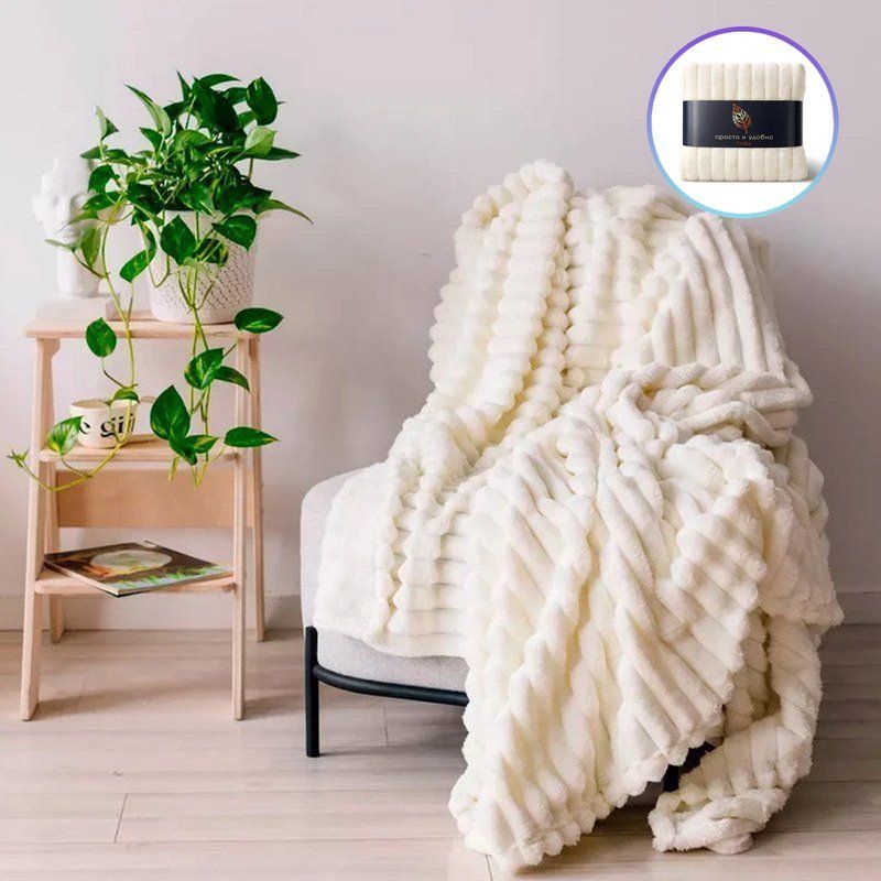 Плед 150*200см велсофт 300GSM полоска 2,5мм белый JC-17906 (12)