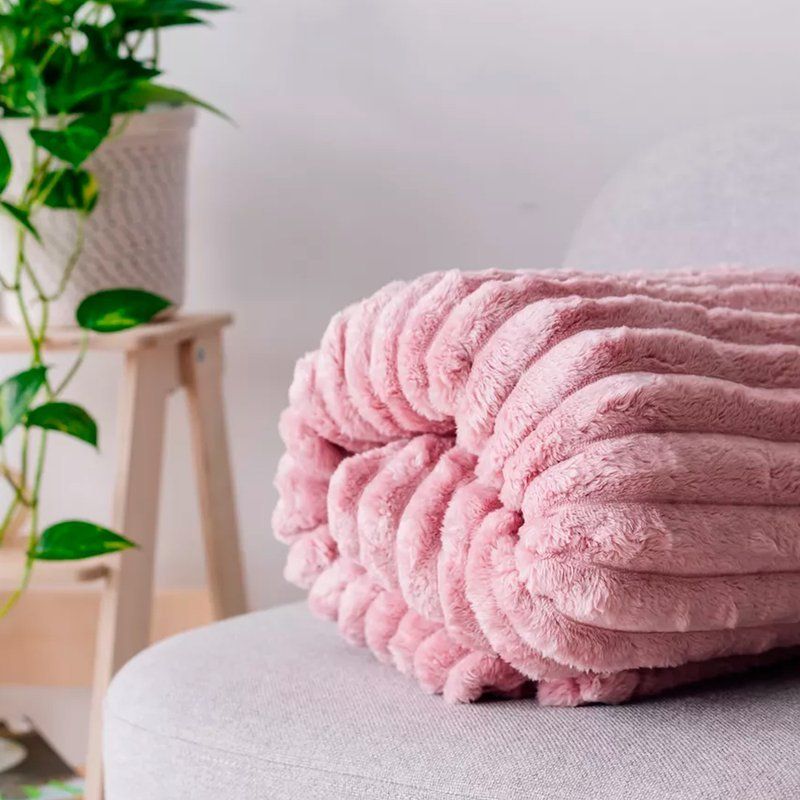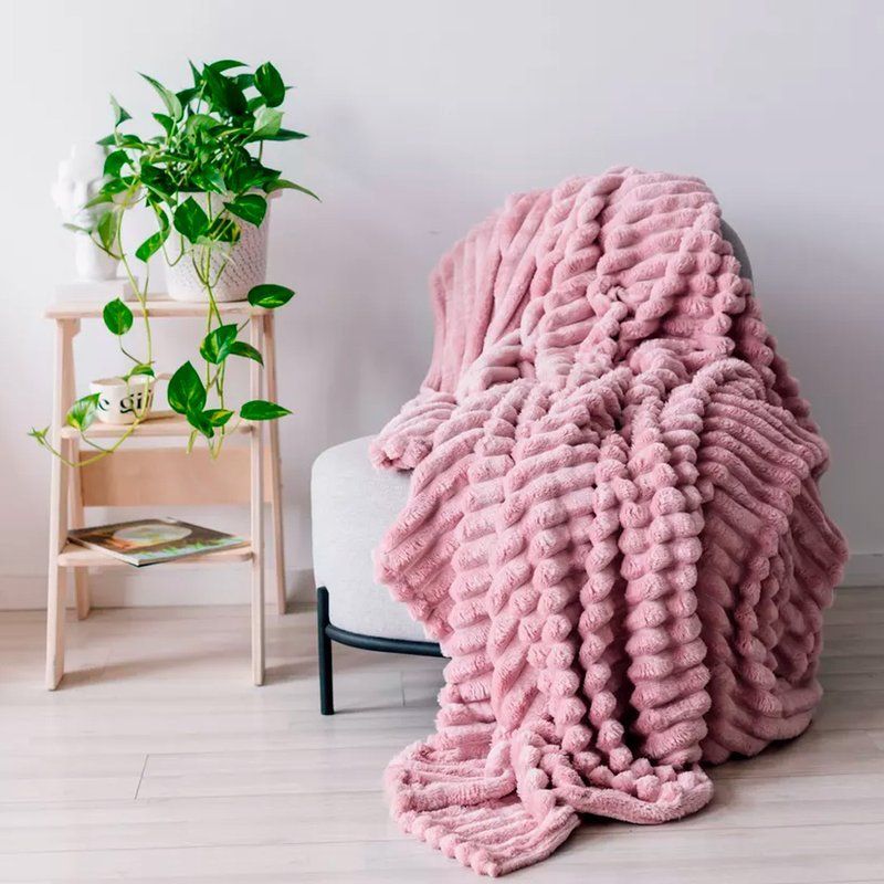 Плед 200*220см велсофт 300GSM полоска 2,5мм розовая пудра JC-17903 (10)
