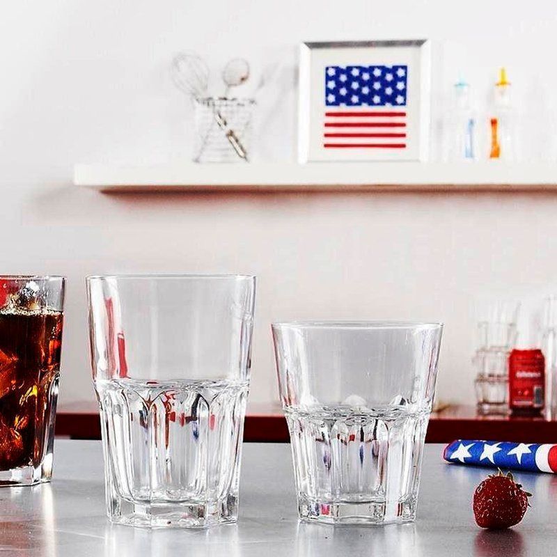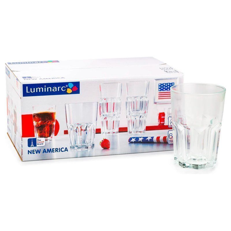 Эстетичные стеклянные высокие стаканы Luminarc Новая Америка – это качественная посуда для сервировки и подачи холодных напитков. Стаканы оригинальной формы изготовлены из высококачественного стекла и отличаются высокой прочностью и прозрачностью. Высокие стаканы поставляются в наборах по шесть штук в каждом. Такая посуда используется как для домашней сервировки, так и в качестве посуды для воды, колы, соков в кафе и ресторанах. Элегантные стаканы бренда Luminarc могут быть использованы для смузи, алкогольных и безалкогольных коктейлей и других напитков во время празднования Рождества, Нового года или любого другого праздника. Универсальные стаканчики объемом 350 мл для воды соединяют в своем дизайне геометрические строгие прямые и округлые линии. Прочные красивые стаканы могут быть использованы в качестве украшения интерьера кухни или столовой.Стаканы для сока и воды из ударопрочного стекла предназначены для интенсивного использования, их можно взять с собой на отдых или в поездку. Высокое качество стекла, из которого изготовлены стаканы, обеспечивает безупречный блеск, идеальную прозрачность, а также устойчивость к сколам и долговечность. Благодаря составу ударопрочного стекла, изделия имеют дополнительную защищенность от механических повреждений, это увеличивает срок службы стеклянных изделий, также позволяет мыть их в посудомоечной машине.
