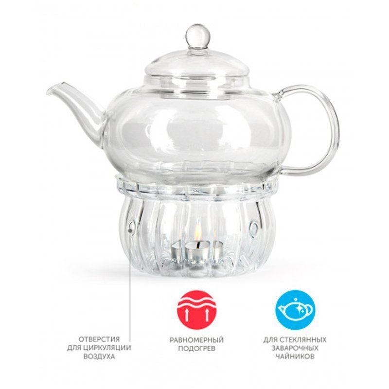 Подставка-подогреватель для чайника 13,5*8см стекло/нерж.сталь BA-002 (30)