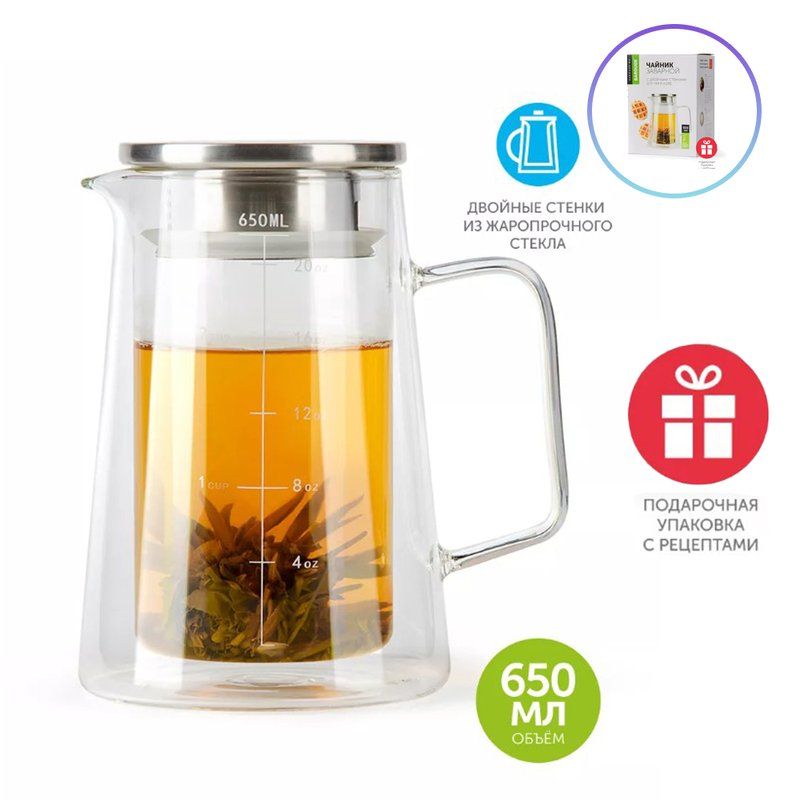 Заварочный чайник с двойными стенками, 650 мл.