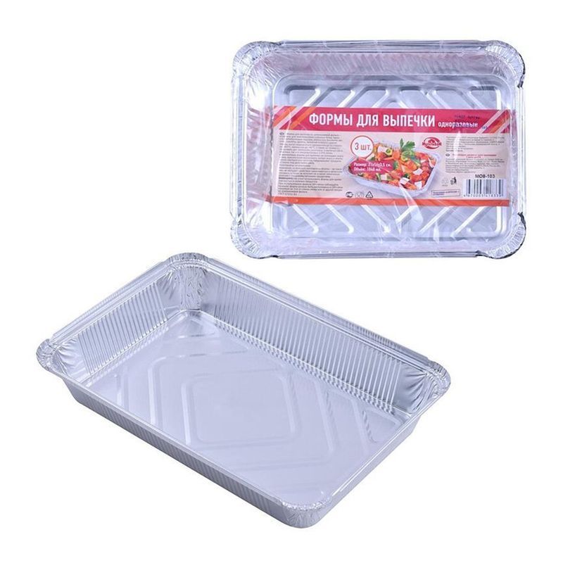 Одноразовые формы для выпечки идеальны для приготовления хлебобулочных изделий, запеканок, бисквитов, омлетов, заливных и т.д. Алюминиевые одноразовые формы для выпечки нагреваются равномерно, имеют хорошую теплопроводность, не разрушаются при воздействии холода. Формочки могут подвергаться нагреванию до 280°С и заморозке до - 40°С. Выпекать можно в обычной духовке и в микроволновых печах. Приготовленные в одноразовой форме блюда обладают привлекательным внешним видом и сохраняют вкусовые качества. Изделия могут использоваться как контейнеры, в них можно взять с собой свежеприготовленную еду на дачу или на пикник. Алюминиевые формы для выпечки не поглощают влагу и жир, препятствуют высыханию пищи, потере вкуса и впитыванию посторонних запахов, предохраняют продукты от порчи под действием света. Одноразовые алюминиевые формы не только облегчают процесс приготовления пищи, но и экономят время, которое не нужно тратить на мытье посуды. Изготовлены из алюминия. Материал не токсичен, не накапливается в организме человека, не вступает в химические реакции с пищей. ВНИМАНИЕ! Не храните в формах кислые и соленые продукты. При использовании форм в СВЧ-печах соблюдайте правило: форма должна быть расположена в СВЧ-печи минимум на 2см от стенок печки или от другой посуды из алюминиевой фольги. Размер 21х16х3,5см, объем 1040 мл.