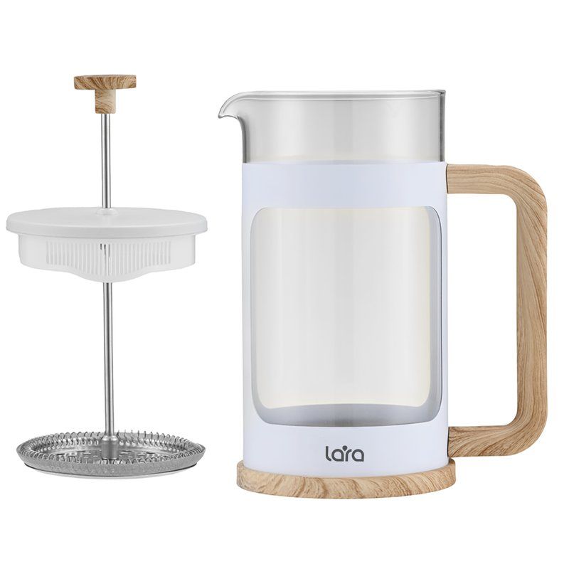 Практичный и стильный френч-пресс порадует насыщенным и ароматным напитком вас и ваших гостей. Френч-пресс выполнен из экологически чистых материалов, которые полностью безопасны для использования. Колба сделана из жаропрочного боросиликатного стекла, устойчивого к резкому перепаду температуры. Пресс-фильтр с уплотнительным кольцом из нержавеющей стали. Пластиковый корпус не нагревается, что минимизирует риск получения ожогов. Форма носика идеальна для наливания напитков и препятствует образованию подтеков. Оригинальный внешний вид изделия украсит интерьер современной кухни.