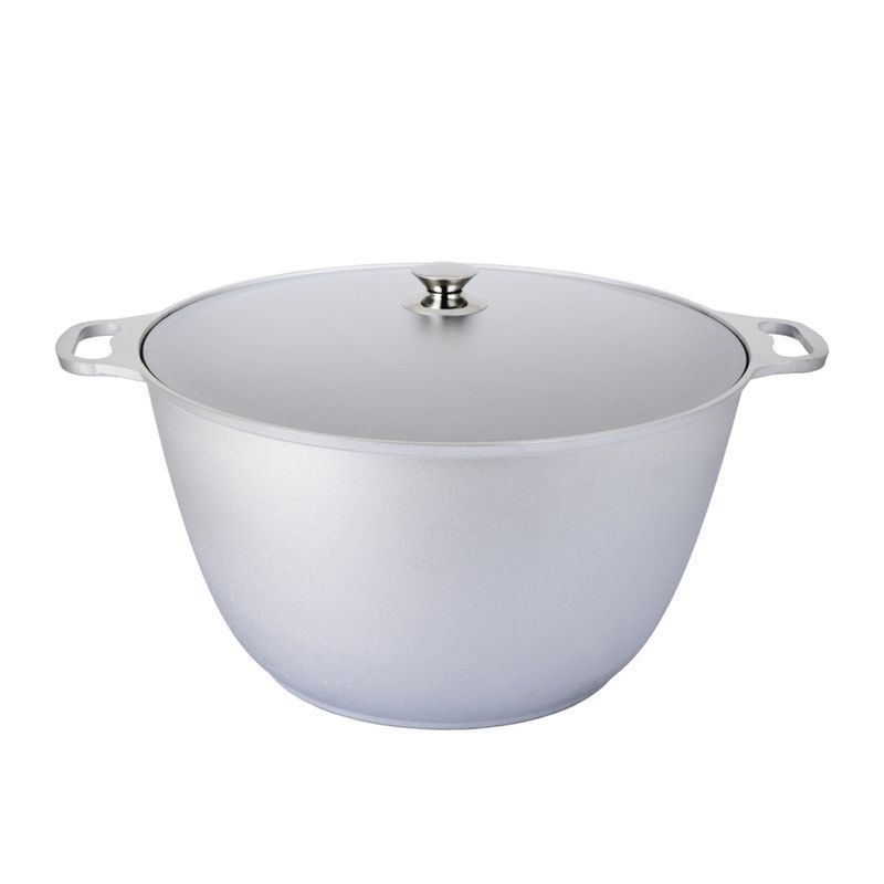 Кастрюля изготовлена из литого алюминия, простая и удобная посуда с нестареющим дизайном.